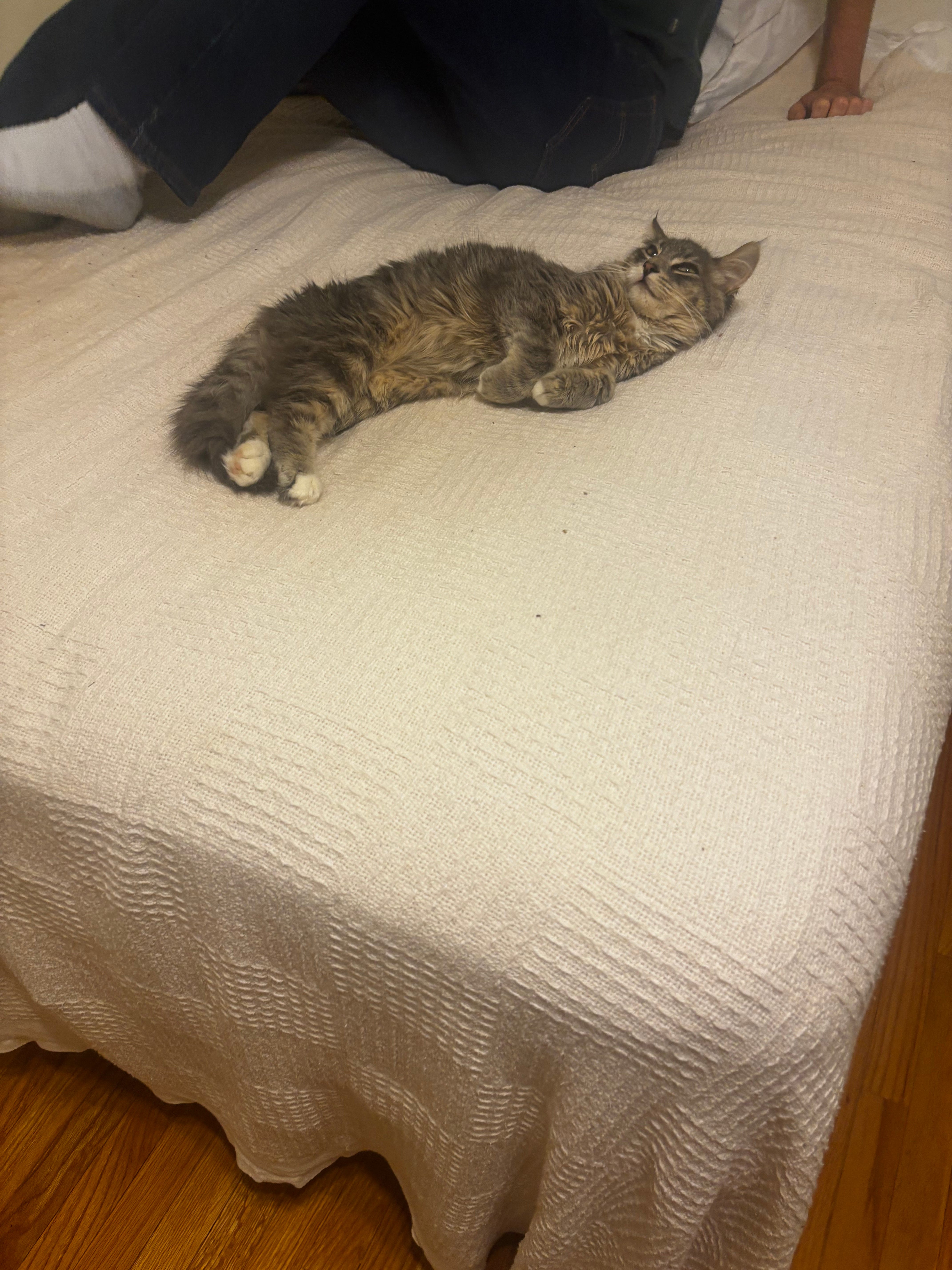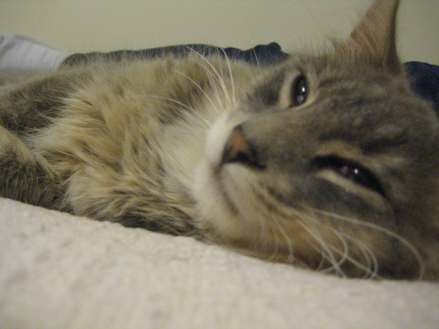 Around 1am she called and the news was about as bad as it could be. The fluid in his abdomen was full of white blood cells fighting off septic peritonitis. She suspected some kind of GI tract rupture (“Did he eat something?”) but we couldn’t think of anything that could have caused such a thing. He hadn’t been a very nosy cat at all and mostly seemed to gravitate towards the best sunbeams the could find in the rooms we’d given him access to (the two brown chairs by the back living room windows were perfect). Whatever the cause, our options were to put him through an uncertain and dangerous exploratory surgery (one that would end at best with an abdominal drain, the ICU, and resected intestine or stomach) or to say goodbye.