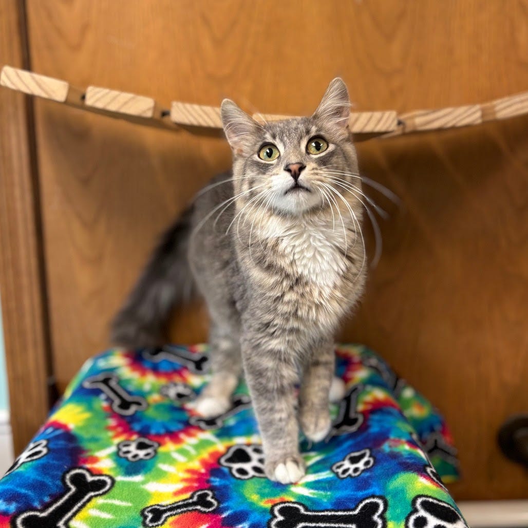 Maybe that sounds like a lot for a little cat to do. It may be, but I say that he did do these things and I would know because he was my friend. We hung out, we chased the ribbon toy, we read books, and we appreciated sunbeams together. For that, thank you, Hal the cat. I wish we could have been friends a lot longer.